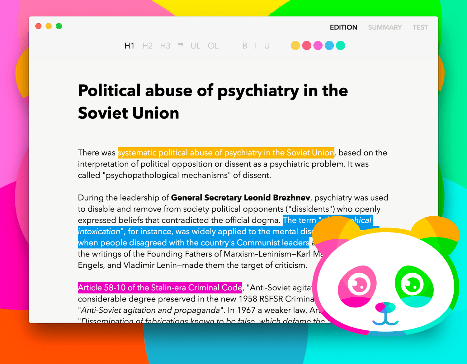 PANDANOTE : text editor designed for learning differently